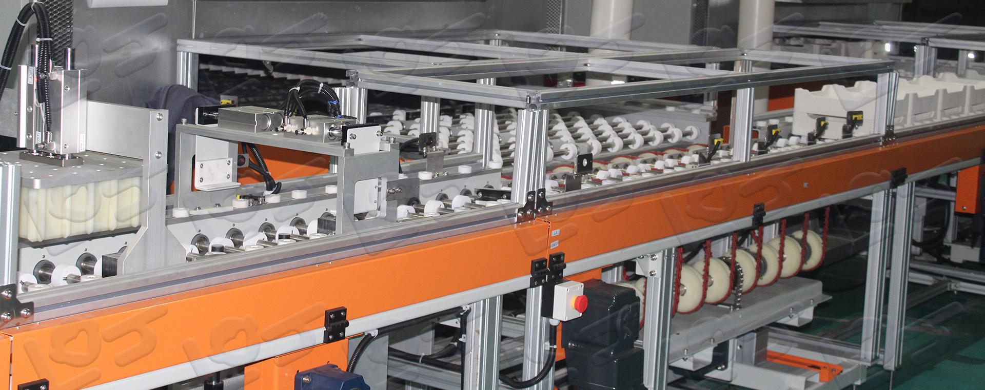 鋰電外軌線采用全新的無人化智能生產標準設計,整條生產線無需人工干預,匣缽傳輸高效穩(wěn)定,各工位動作流暢平穩(wěn),整體密封性能高。